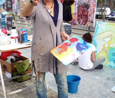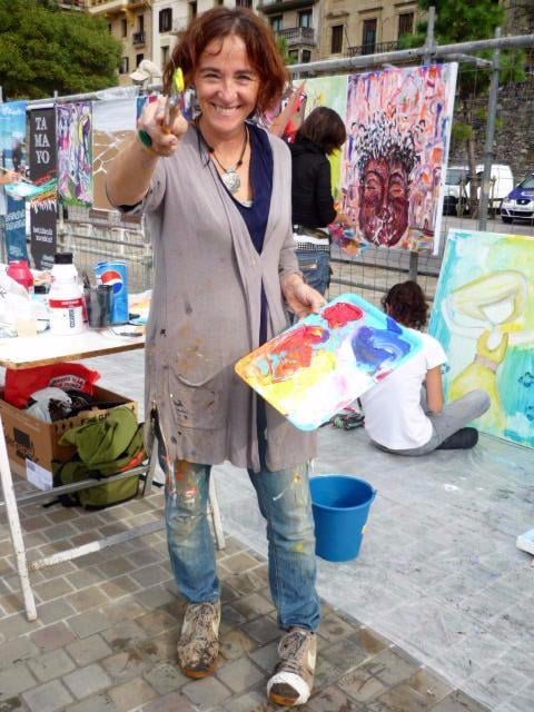 Txitxi: Hola — soy Arantxa Orbegozo, aunque muchos me conocen como “Txitxi”. OrbegozoArt es mi alma puesta en pinceles, brochas, viajes y pintura. Creo murales, retratos, intervenciones artísticas, y también acompaño a personas a descubrir su creatividad. Para mí, el arte es más que imagen: es identidad, comunidad, memoria, emoción.
